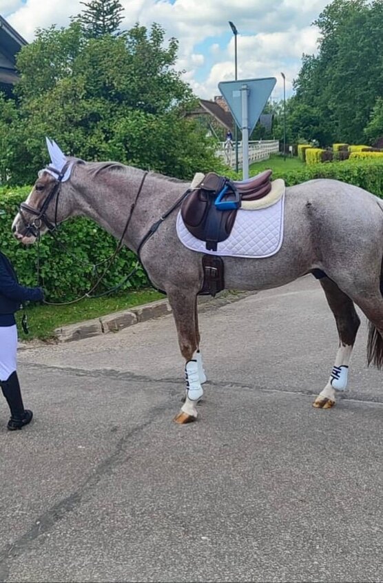 Стартовый опыт до 110 см, дома прыгает выше.