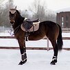 Вольты, диагонали, остановки, серпантины- все умеет. Подъем в галоп с рыси.