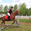 Имеет стартовый опыт в маршрутах до 50 см и тестовых ездах. Дома прыгает маршруты до 70 см, одиночные до 80 см.