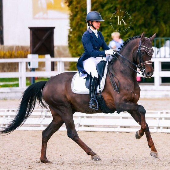 Победитель и призер Всероссийских соревнований по малому кругу и юниорским ездам. В данный момент выполняет все элементы БП. Легко управляемый, очень честный и отзывчивый в работе. Подойдет юноше, юниору, взрослому всаднику.
