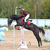 Очень приятный в лесах и полях. Не боится ярких жердей и откосов, идёт уверенно. Умный, быстро учится, на незнакомые барьеры и нервную обстановку не реагирует. На маршрутах сиди и рули, сделает всё сам. С лошадью справляется 11 летний ребенок, в руках безопасный.