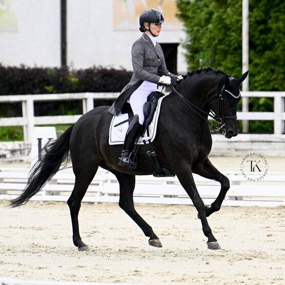 Кобыла. Голландской теплокровной породы. Вороной масти. 168 см в холке. 2015 года рождения. Отец - Гламурдей, Мать - Эфира. Рождена в Нидерландах.