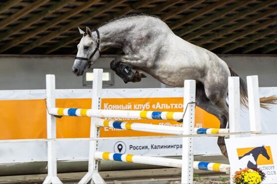 Заезжен. Проходит тренинг молодой лошади. Напрыган в шпринте до 130 см. Обладает очень удобными аллюрами.