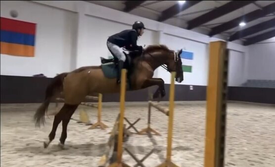 Не под новичка, темпераментная и уверенная в себе лошадь с перспективой в спорт.