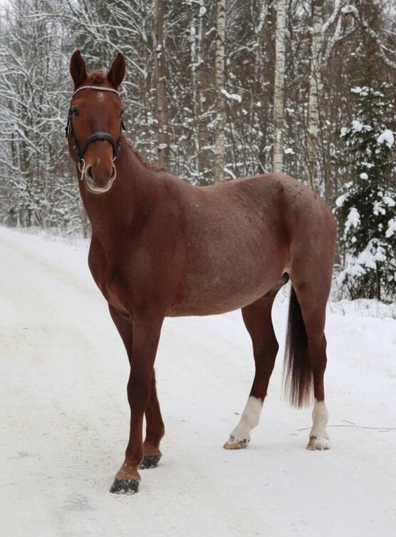 Заезжен, широкий, удобный, ранее работал исключительно по полям, сейчас уже знаком с крытым манежем, растили, не форсировали, немного напрыган в шпринте.