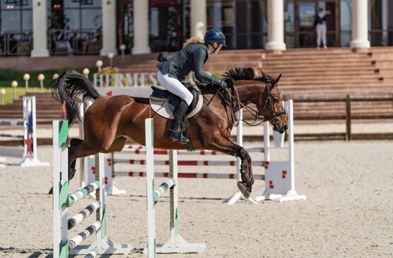 Прыгает любые заложения и конфигурации, знакома с троеборными барьерами, ничего не боится.