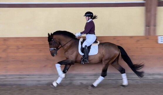Находится в выездковом тренинге, ставится грамотная база, три аллюра, подъёмы, переходы, контргалоп, сырая менка, готов на детские езды.