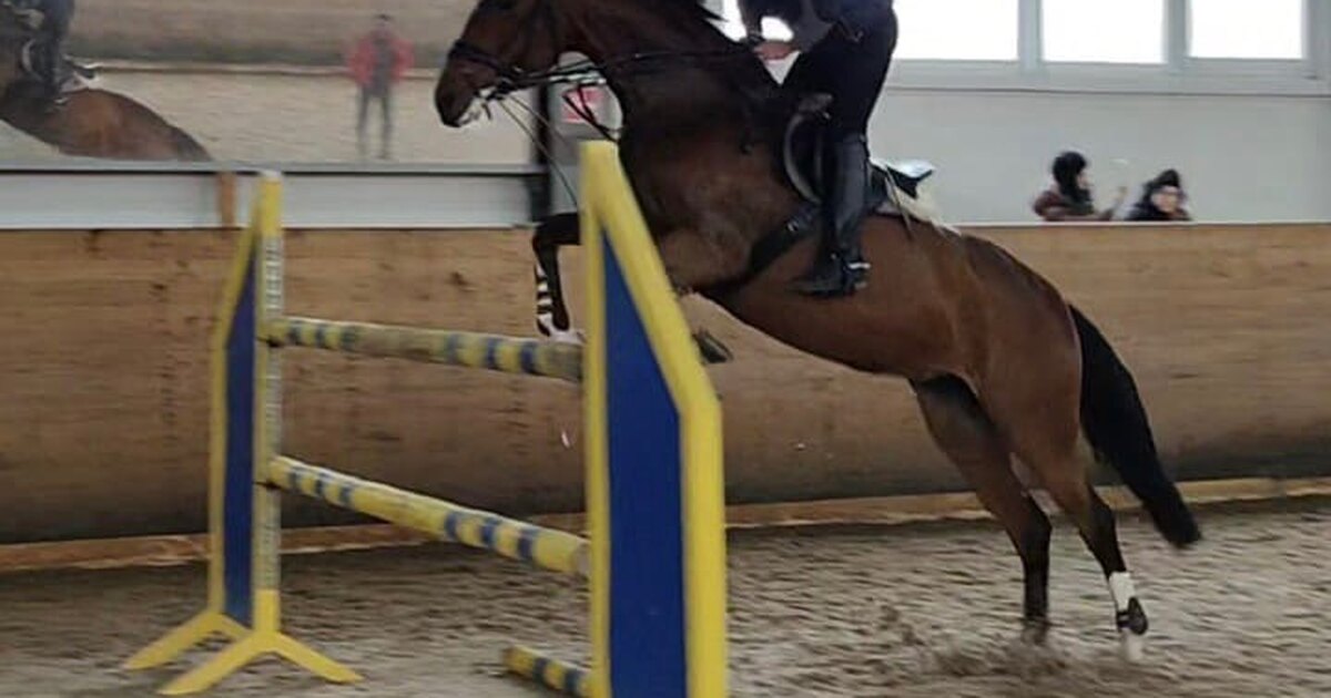 Отец - Выпад; Мать - Фаворитка. Сильная, скоростная, честная, не смотрящая, прощает ошибки, без вредных привычек. Маршруты до 115 см на стартах. Все манипуляции без проблем.