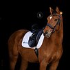 Не имеет поведенческих проблем. Имеет качественные аллюры, очень легкий, гибкий и мягкий. Прекрасно грузится в коневоз. Выезжал тренироваться на другие площадки - не боится. Любые манипуляции на отлично.