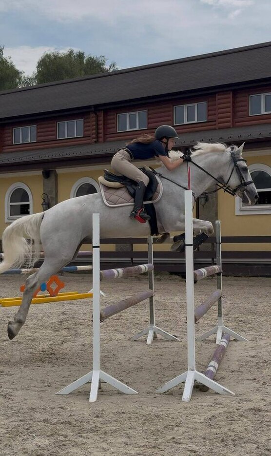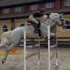 Старты - маршруты до 100 см. Дома - маршруты до 120 см, одиночные до 130 см. Обладает сильным и техничным прыжком, в меру активный, перспективен на высоты. Мягкий на средства управления. Ходит в поля, купается. Очень душевный, любит внимание.