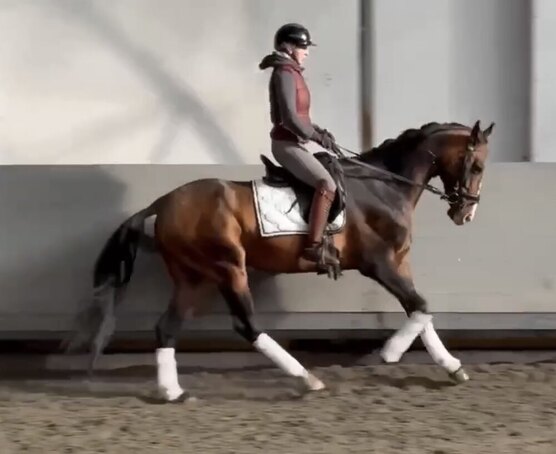 Работает в выездковом направлении, работают над базой, манежные фигуры, переходы, остановки, уступки.