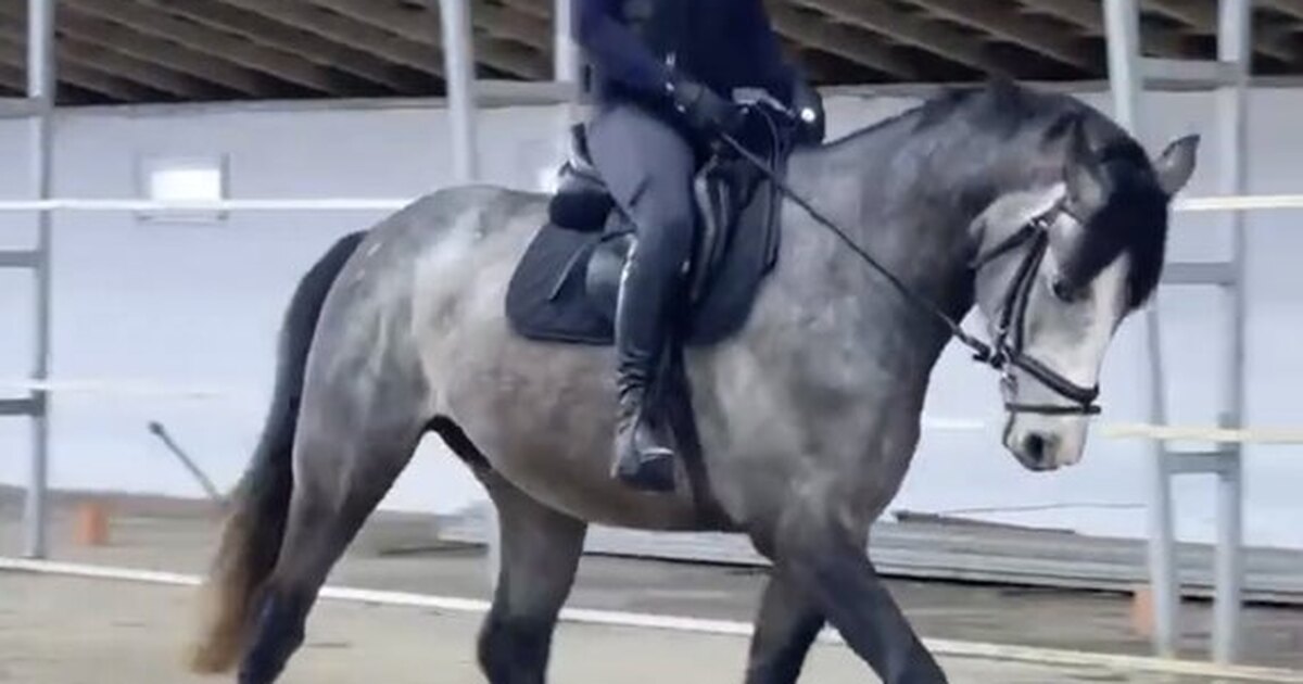 Верхом работают три аллюра, работают над базой, от природы обладает хорошими движениями, бежит с желанием, от зада, принимает повод, очень приятный и удобный под седлом.