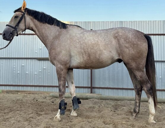 Плавно готовится к заездке, знает корду и уздечку. Напрыган в шпринте до 130 см. Активный, но безопасный - в руках спокойно справится любитель. Обладает продуктивными движениями, амплитудный. Каждый день на выгуле.