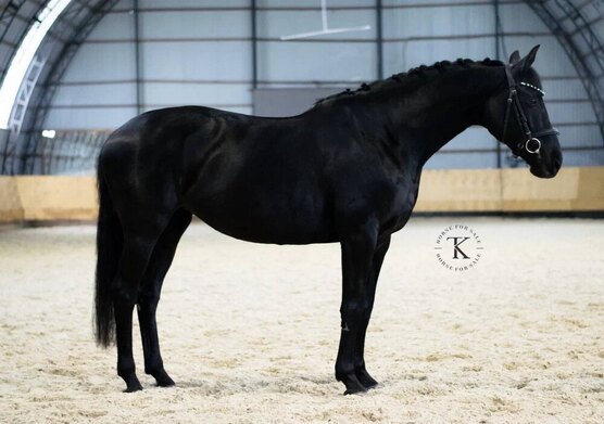 Кобыла. Ганноверской породы. Вороной масти. 166 см в холке. 2017 года рождения. Отец - Лафайет. Находится в одних руках с завода.
