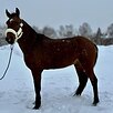Стартовый опыт в пробегах на дистанцию 40 км. Выиграл с большим отрывом, результат 18.2 км/ч. Идеально работает в полях. Прыгает связки 80 - 100 см., но приоритетным направлением тренинга являются пробеги. Конь активный, подходит под уверенно сидящего всадника.