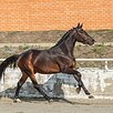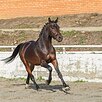 Жеребчик поздний, сейчас 157 в холке. Вместе с тем, обладает природным балансом и движениями согласно породе и происхождению. С прекасной психикой. ожидаемый рост до 165 см.