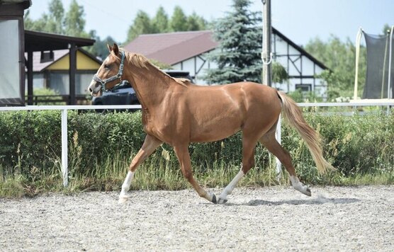 Дома - маршруты до 60 см, шпринт до 130 см, знакома с троеборными барьерами, ходит по водным связкам ДК60. Отлично выезжена, в тренинге у КМС по выездке. Ходит в поля. Обладает мягкими продуктивными аллюрами и плавным прыжком с хорошим баскюлем. Безопасная, спокойная, смелая.
