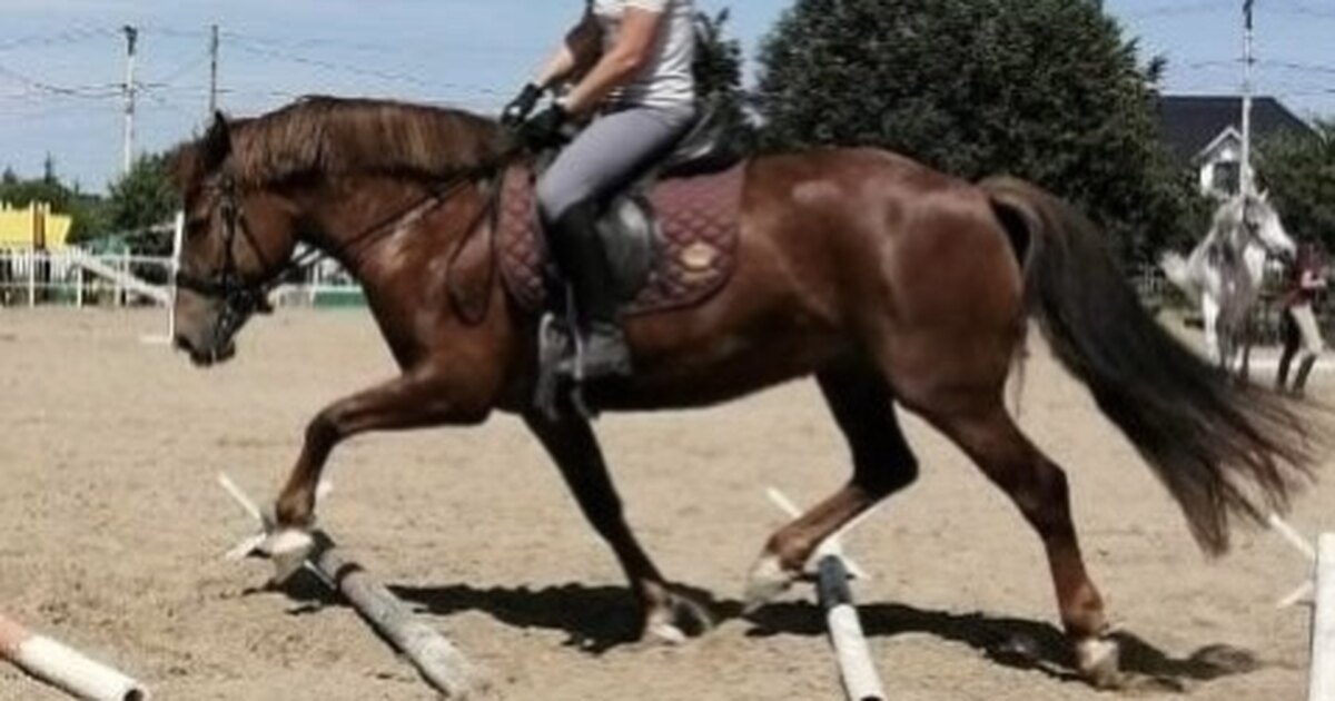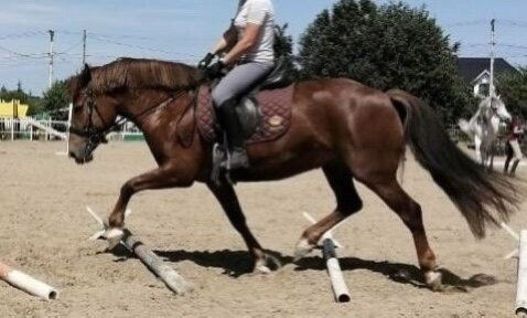Старты - Детские езды (70%), Юношеские езды. Дома - одиночные до 100 см. Абсолютно адекватная, ничего не боится, ориентирована на человека. На данный момент находится в легком тренинге.