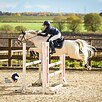 Дома прыгает связки 120-125 см. под детьми 9-11 лет, знаком с троеборными барьерами.