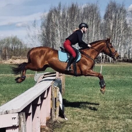 Старты - ППД (А), ДК90. Дома - связки до 120 см, шпринт до 135 см; знает элементы Юношеских езд. Безопасная, добродушная.