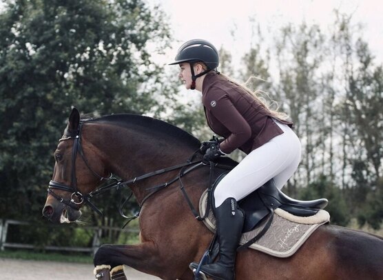 Старты - маршруты до 60 см, Детские езды. Дома - связки до 100 см, шпринт до 140 см. Ходит в поля, любит купаться. Очень удобная, активная, сильная. Стабунена, неконфликтная. Добрая и ласковая к человеку.
