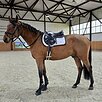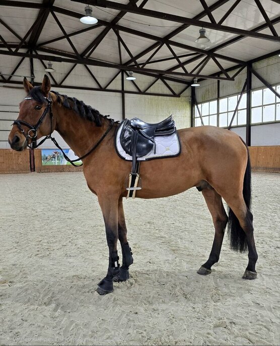 Напрыган в шпринте до140 см., начинает напрыгиваться под седлом. Очень удобный и спокойный. Смелый, несмотрящий.