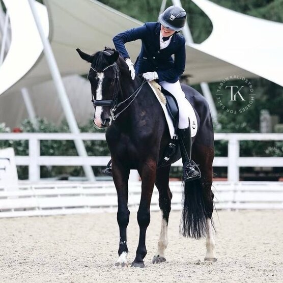 Кобыла. Голландской теплокровной породы. Вороной масти. Около 176 см в холке. 2016 года рождения.
