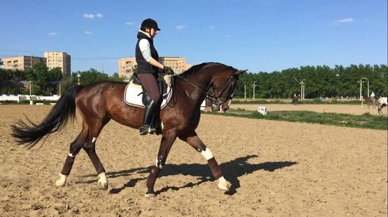 В выездке уровень Юношеских езд, есть стартовый опыт.