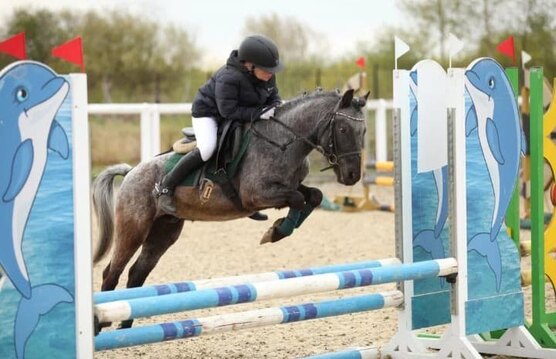 Прыгает маршруты до 70 см., одиночные- до 90 см. Есть стартовый опыт под детьми.