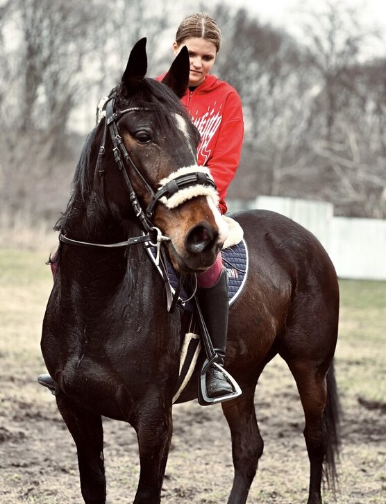 Заезжена под седло и в упряжь. Ходит в леса / поля. Адекватная, безопасная, ориентирована на человека. Ездит 13-летний ребенок.