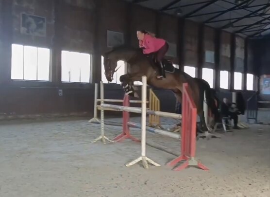 Перспективная молодая лошадь в спорт. Обладает очень сильным прыжком и качественными аллюрами.