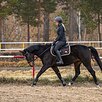 Хорошие движения, перспективна в выездку и конкур. Напрыгана под верхом до 100 см, шпринт 120 см, сырая одиночная менка ног, уступка шенкелю. На корде работает от голосовых команд.