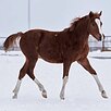Очень крупный для своего возраста, демонстрирует замечательный экстерьер и крепкую конституцию. Отличные аллюры в горку, особенно хорош шаг.