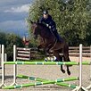 Старты - маршруты до 100 см. Дома - маршруты до 115 см, связки до 125 см. Знает троеборные барьеры. На прыжках выручает. Любит ходить в поля, купаться. Ласковый, обожает внимание.