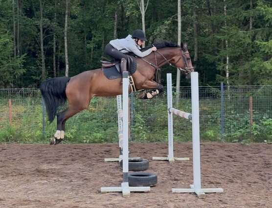 Стартовый опыт в конкуре высотой препятствий до 120 см. Напрыгана в шпринте до 150 см. Аккуратная, любит прыгать. Подходит под всадника любого уровня подготовки, включая ребёнка.