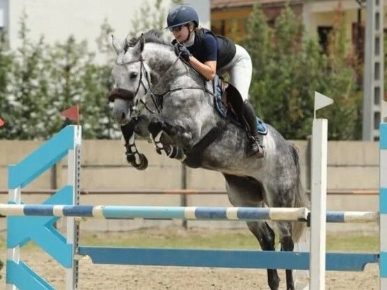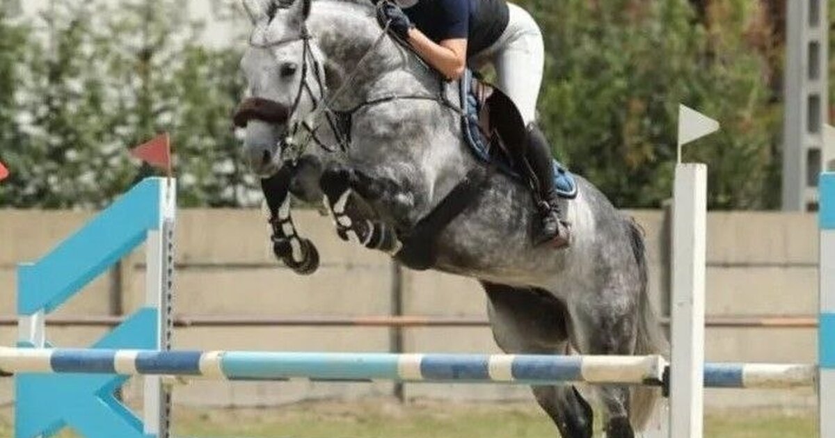 Стартовый опыт в конкуре с высотой препятствий до 125 см., дома - выше, очень сильная, талантливая лошадь. Три качественных аллюра, техничный, сильный, лёгкий прыжок. Жерди не трогает, очень аккуратная. Подходит только под опытного всадника.