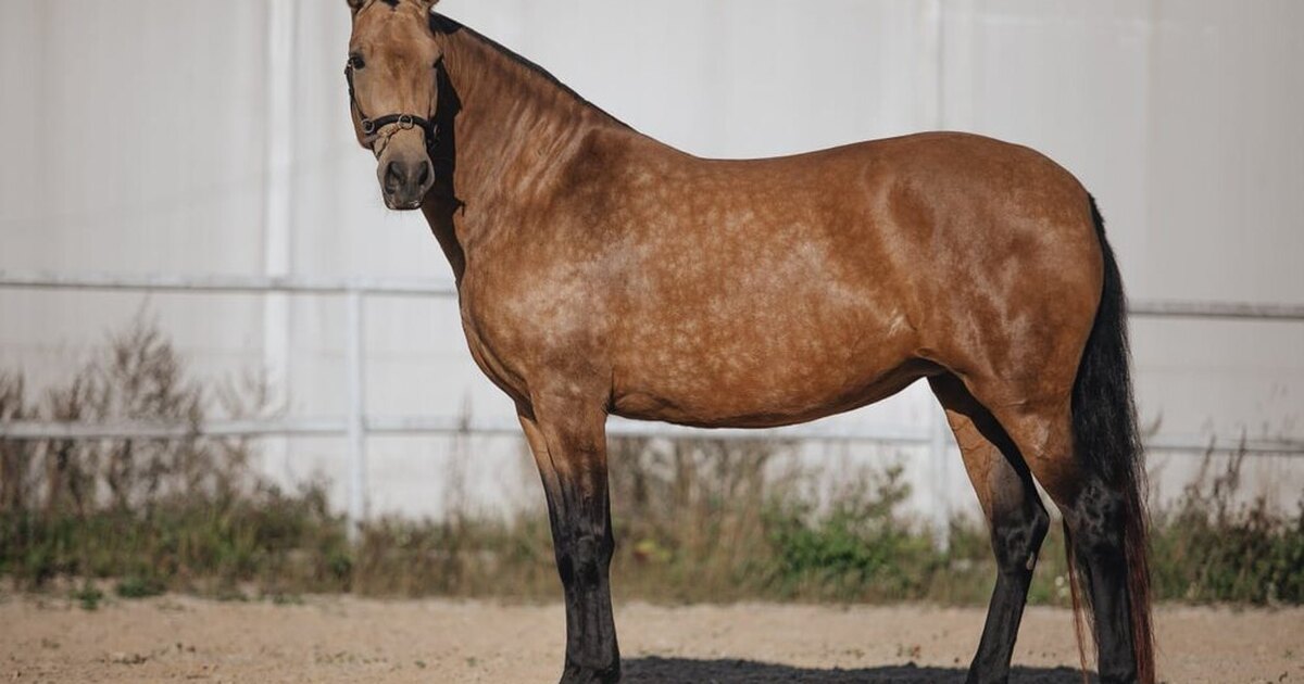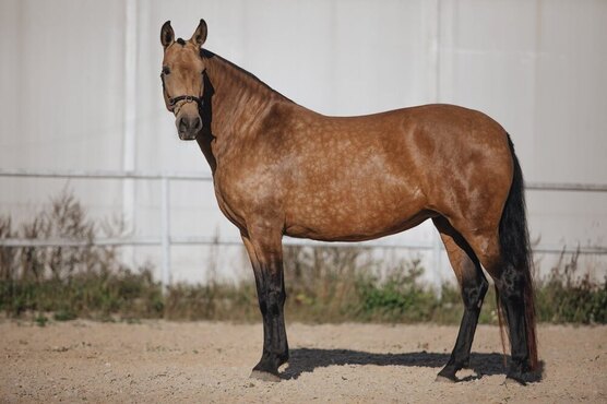 Буланая андалузская кобыла 2020г.р, в/х165см, растёт. Крупная, широкая на хороших движениях. Красивая голова с лёгкой горбинкой. Качественное выращивание на хорошем сене и кормах, живёт в табуне с многочасовым выгулом. В регулярном тренинге по системе Equi Flow, готовится к заездке, обучается трюкам. Испанские документы.