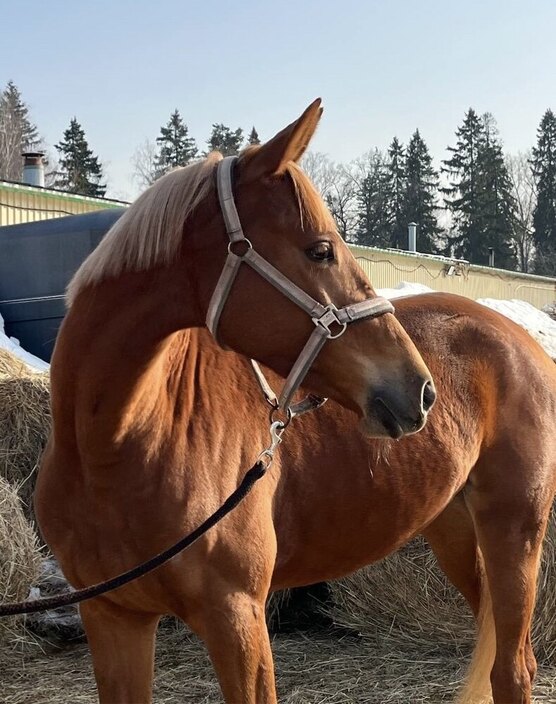 Поставлена на корду, знакома со всеми манипуляциями. Общительная, активная и доброжелательная кобылка. Обладает стабильной психикой.