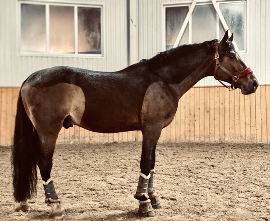 Заезжен, немного напрыган в шпринте до 100 см, знает кавалетти. По характеру - танк, не боится вообще ничего, ориентирован на человека, очень социальный. Удобный.