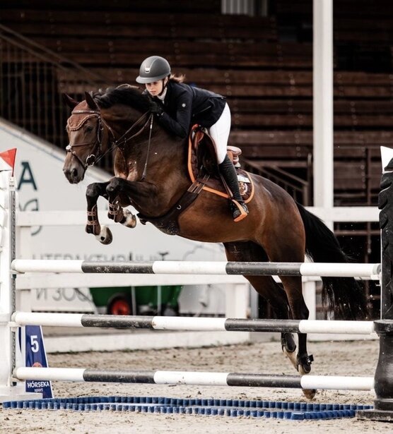 Старты - маршруты до 115 см. Дома - маршруты до 120 см, одиночные до 130 см; Детские езды, знает принимания. На барьеры не смотрит. Находится в тренинге у МС. Комфортная в руках и верхом, безопасная.