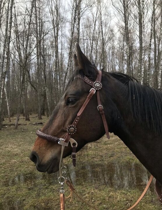 Бегает 3 аллюрами под всадником, отлично ходит в поля. Маневренная, легко управляется, работается как на хакаморе, так и на железе. Аккуратная, очень удобная. Гуляет в табуне. Жеребилась.