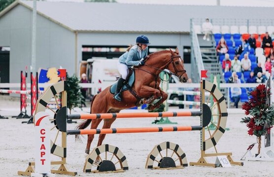Старты - маршруты до 120 см (под ребенком), часто в призах. Знает некоторые элементы выездки. Поднял ребенка с нуля до маршрутов 120 см. Прыгает все, не смотрит, легко срезает. Делает все сам - сиди и рули. Терпеливый, аккуратный ко всаднику, всему научит.