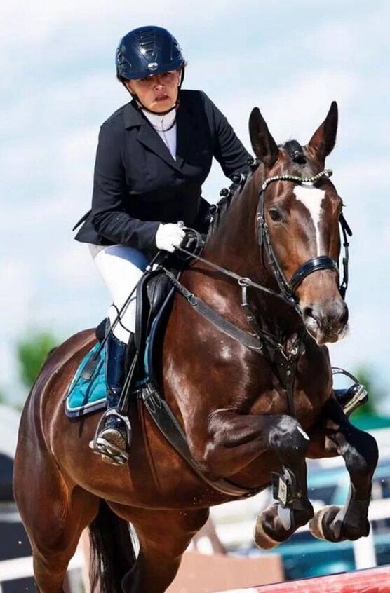 • кобыла с хорошей психикой , на стартах прыгает маршруты 110см , дома 115 ,отлично себя показывает в стартовой обстановке , смелая , сильная и надежная лошадь в спорт с хорошим прыжком и головой