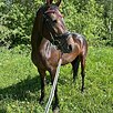 ?•Спокойно реагирует на спрей, уколы, расчистку копыт (на 5+). Легко табунится