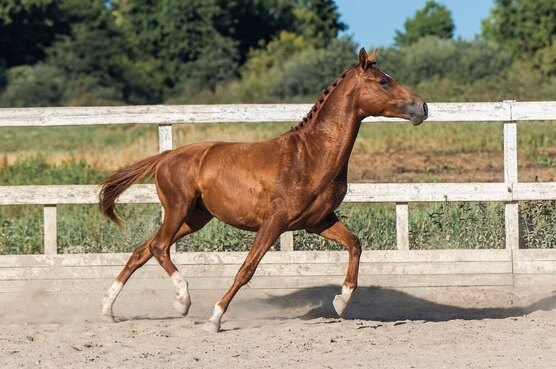 Заезжен весной 2025 г. Проходит базовую подготовку под седлом.