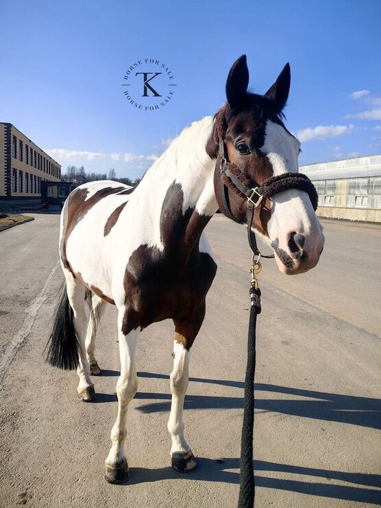 Кобыла. Голландской теплокровной породы. Пегой масти. 172 см в холке. 2014 года рождения.