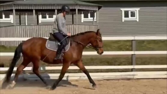 Заезжена, на шикарных движениях. Три аллюра под всадником. На свободе напрыгана до 120 см. Под всадником 90-100 см. Милейший характер, абсолютно безвредная в руках. Верхом уравновешенная. Не трусливая, спокойная и нет вредных привычек, все манипуляции без проблем.