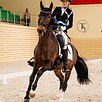 Имеет отличный характер, очень контактный, готов сотрудничать с человеком. Очень умный, быстро обучается. Уровень подготовки: юношеские езды на 65+ %, элементы МП. Немного прыгает.