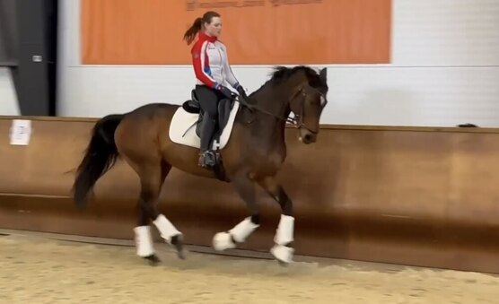 Хорошо и грамотно выезжен, из элементов делает одиночную менку, уступки, плечи, принимания на галопе и рыси. Перспективен в плане качества аллюров, в работе будет бегать лучше и выше.