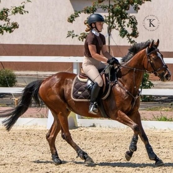 Отец - Пофтор, мать - Гавань Валдая. Ласковый, адекватный. Стартовый опыт до 100 см, дома до 110 см, может выше. Идеально делает переходы, подъемы. Имеет хорошую технику прыжка. Очень прыгучий, выпрыгивает из любой точки. Имеет правильные аллюры. Простой в управлении, легкий на руку, работает на обычном железе. Не имеет проблем в быту. Возможна продажа с амуницией. Имеется паспорт ФКСР.